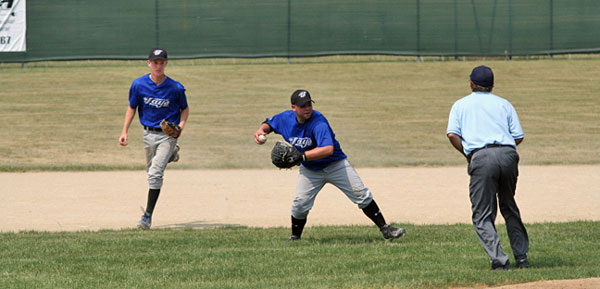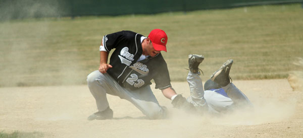 Jon Frey is tagged out in an attempt to seal second base.