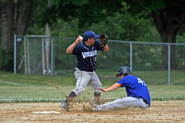 Nic Larson slides into second base.