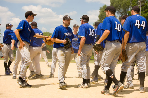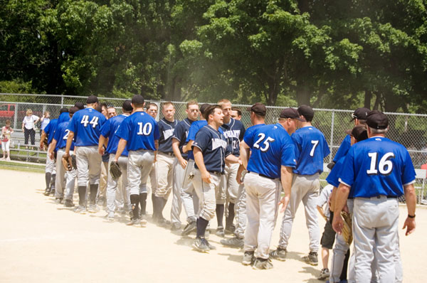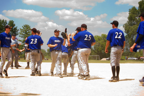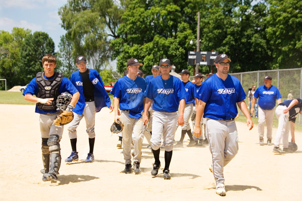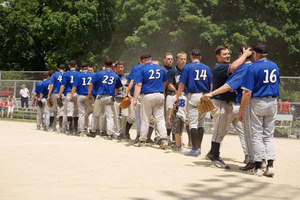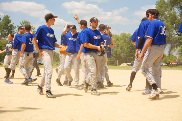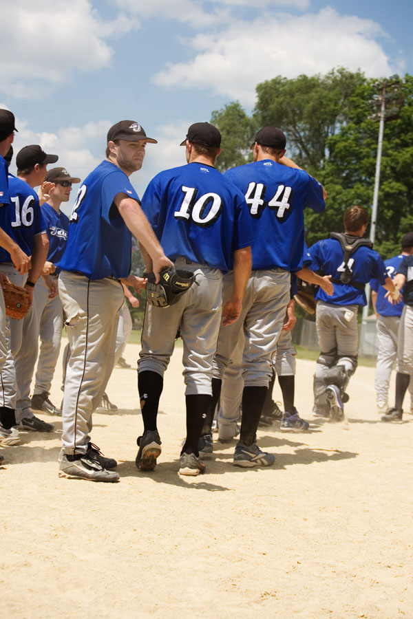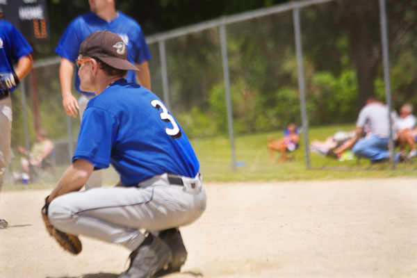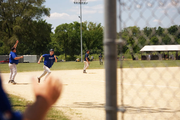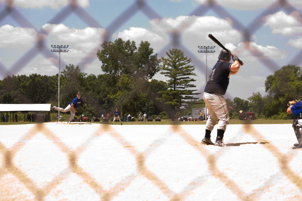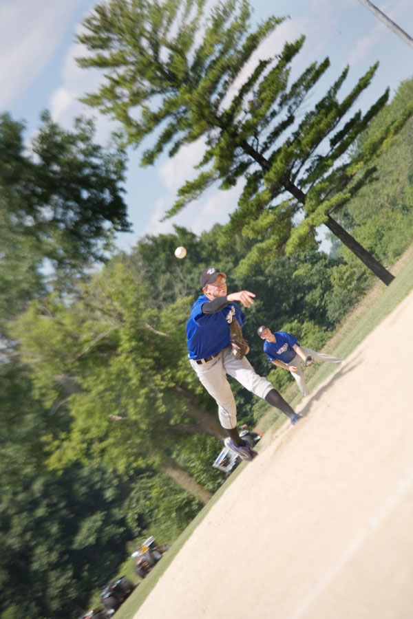 Matt Drefahl pitching and Jeremy Rasmussen in right field.