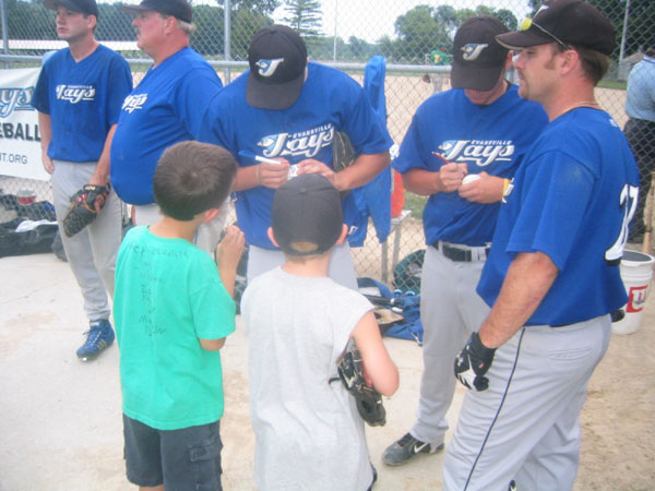 Jays players playing catch with future Jays.