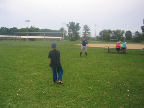 Jasen Koebler playing catch with a future Jay.